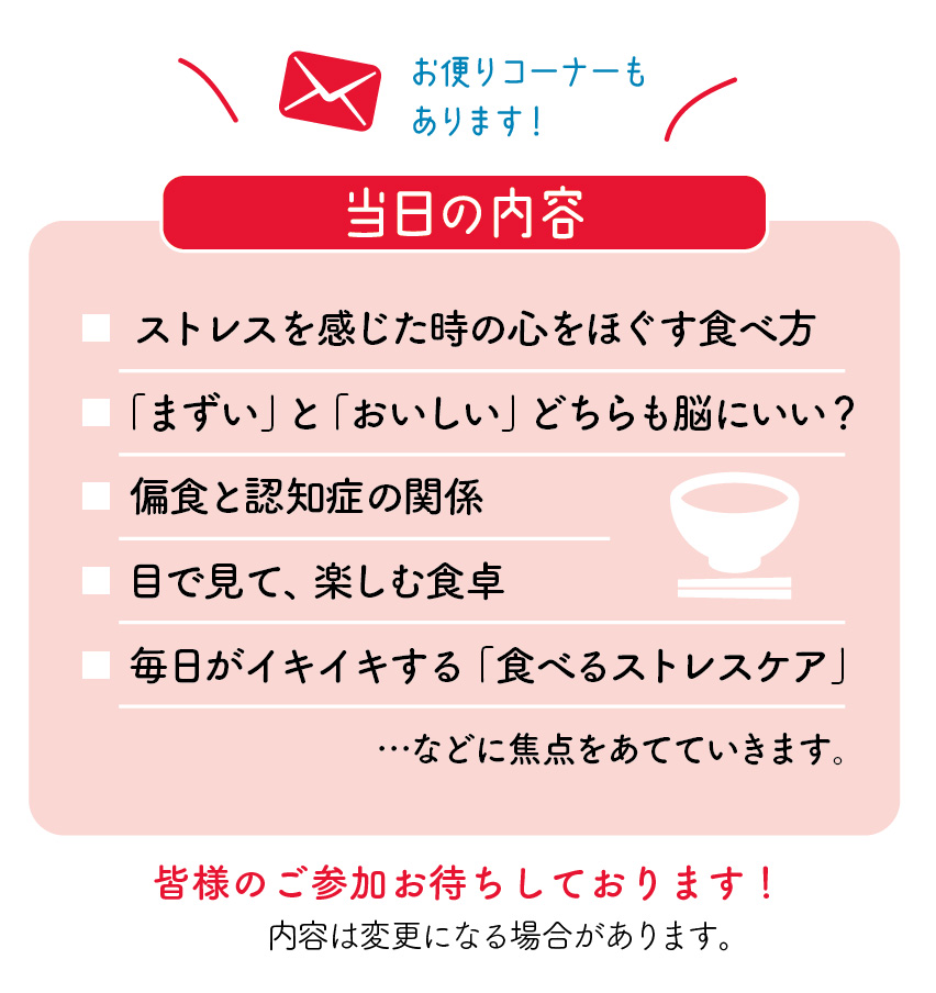 【ふれあい広場】11月1日「食べるストレスケア」