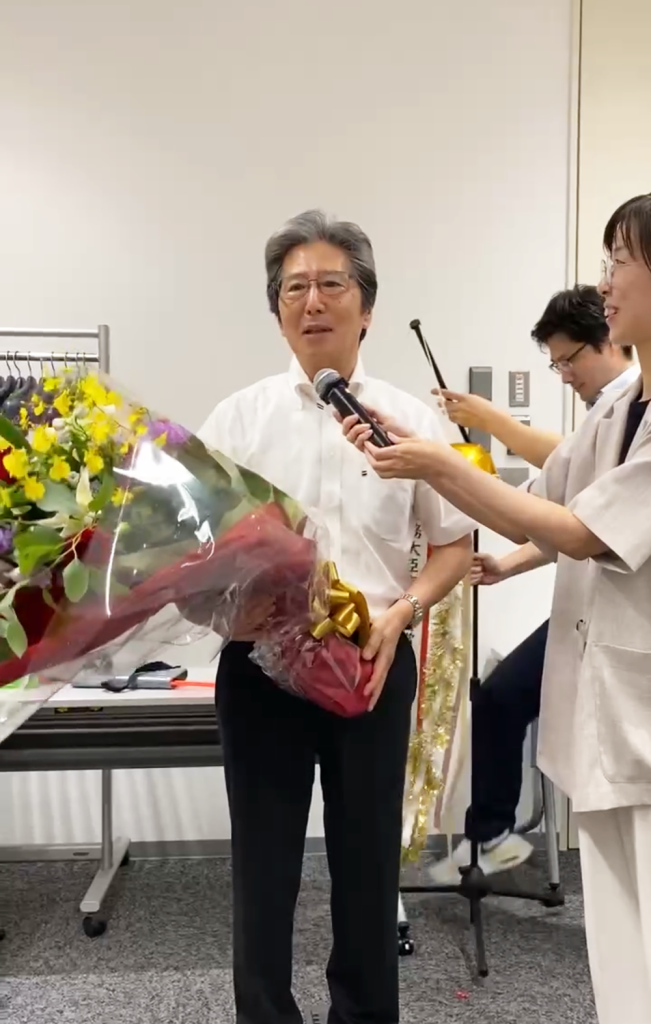 温かい拍手に包まれながら理事長へ花束が贈られました。