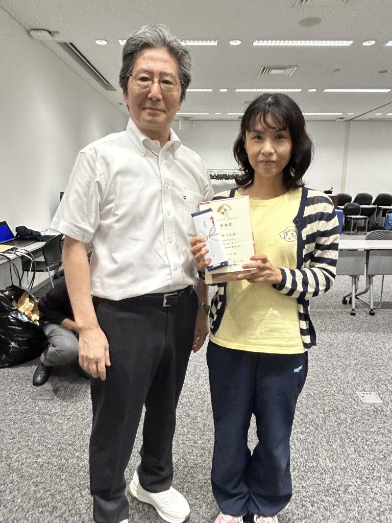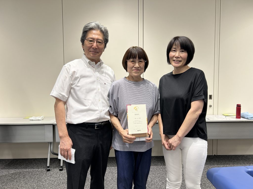 まずは、4名の認定ストレスケアトレーナーに美野田理事長から感謝状と記念品が贈呈されました。