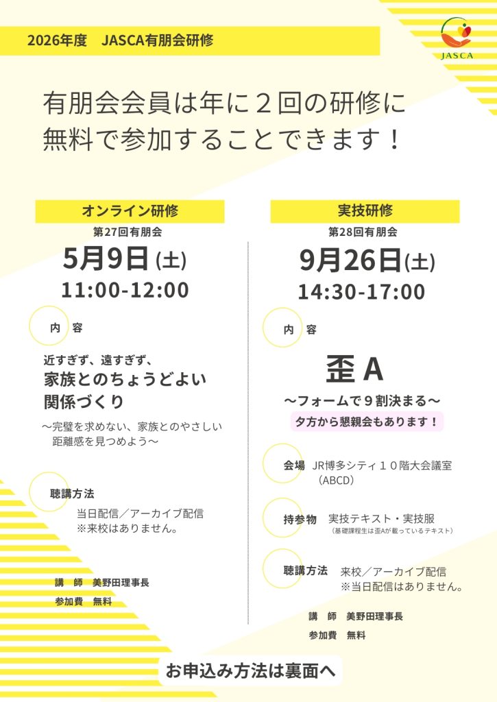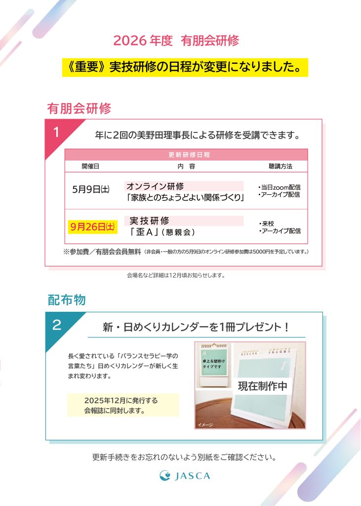 〈重要〉2026年研修日程変更(2025年11月22日更新)
